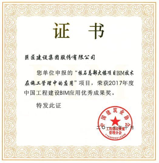 2017-11-06 我集團(tuán)BIM技術(shù)應(yīng)用取得階段性成果 近日,由中國建筑業(yè)協(xié)會工程建設(shè)質(zhì)量管理分會主辦的“中國工程建設(shè)BIM應(yīng)用成果交流會”在浙江寧波召開。我集團(tuán)申報的“振石總部大樓項目BIM技術(shù)在施工管理中的應(yīng)用”榮獲2017年度中國工程建設(shè)...