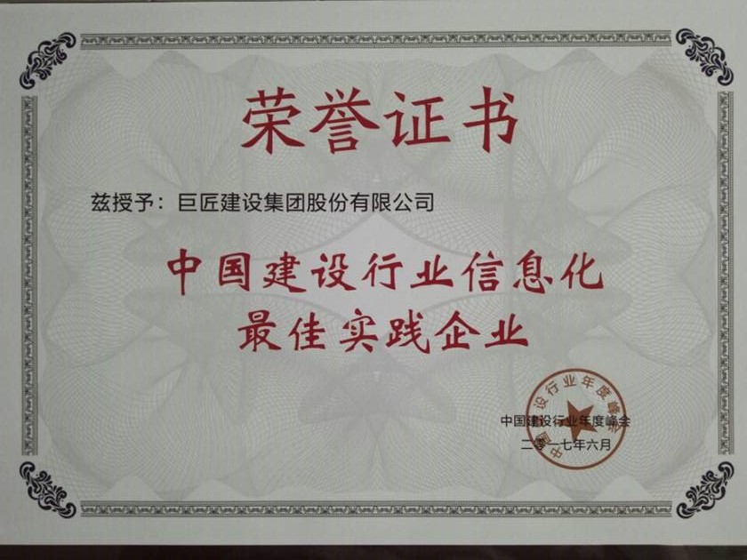 我集團榮獲“中國建設行業信息化最佳實踐企業”
