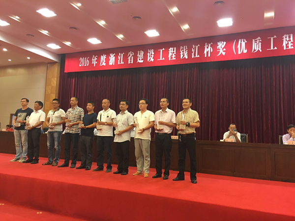 2016-09-28 木心美術館受“錢江杯”頒獎大會點名表揚 一年一度的浙江省“錢江杯”獎(優質工程)頒獎大會于9月27日在美麗的杭州舉行。我單位總承包施工的烏鎮大劇院配套工程——木心美術館獲此殊榮,同時,因其獨一無二的施工工藝得到了大會的高度贊揚...